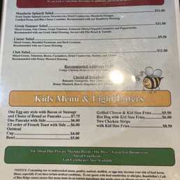 BumbleBee's Cafe Menu